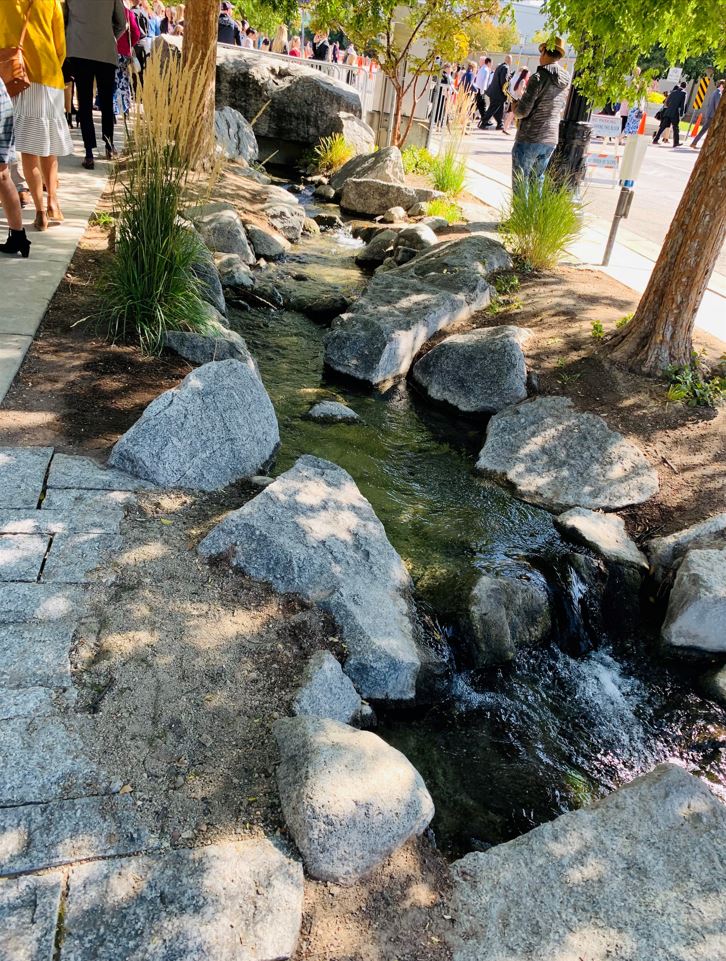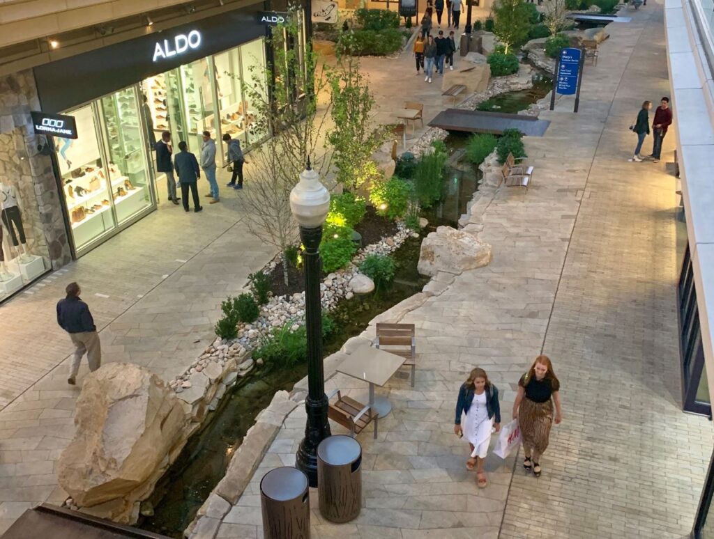 Photo of an artificial creek in the open-air section of City Creek Mall in Salt Lake City, Utah.