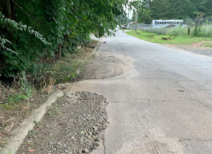 Areas where water collects and flows along Railroad Avenue and on the future town green site following heavy rain.