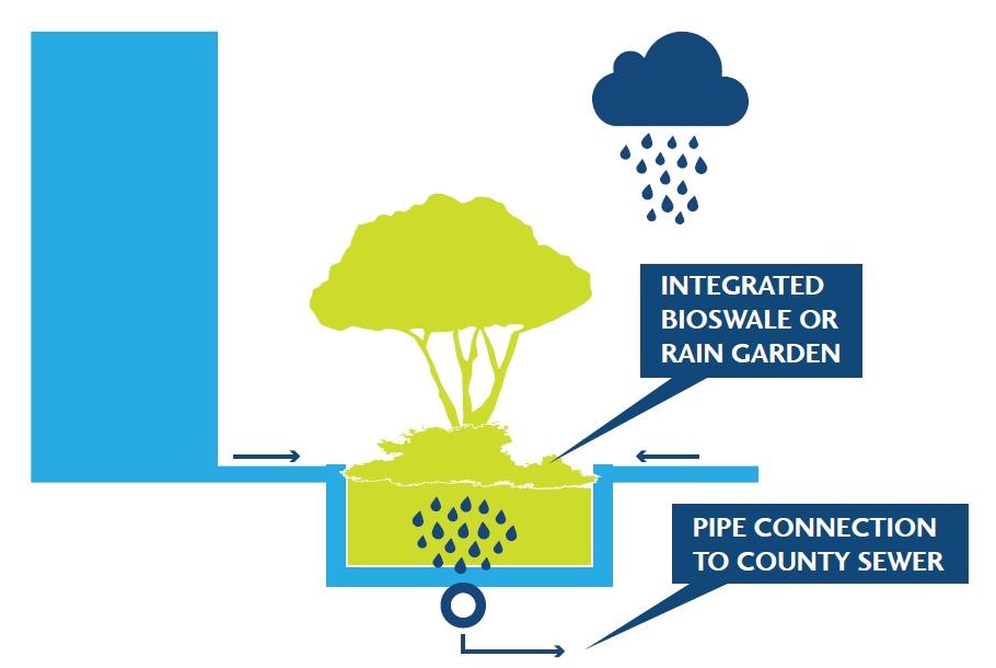 “Bioswales are stormwater runoff conveyance systems that provide an alternative to storm sewers.” Documents like the Chicago Green Alley Handbook, the City of Atlanta’s Green Infrastructure Strategic Action Plan, and Green Infrastructure Story Map, focus on the use of stormwater to feed the surrounding environment and reduce the rate and volume of water runoff.