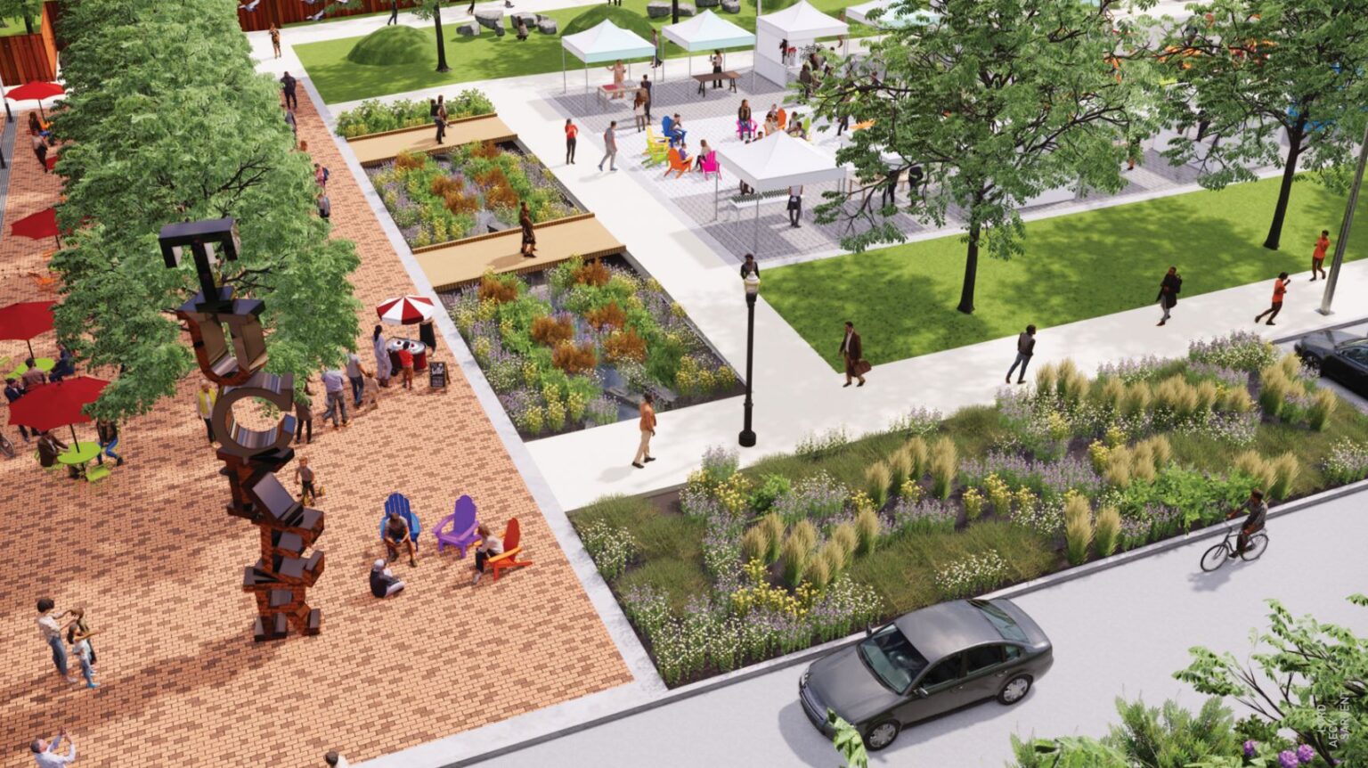 Please note: that renderings in this article related to the town green are for discussion purposes only. A final design has not been selected by the City Council. The Council is expected to make a decision on implementation later this year following the inclusion of additional public input and recommendations from Barge Design Solutions.