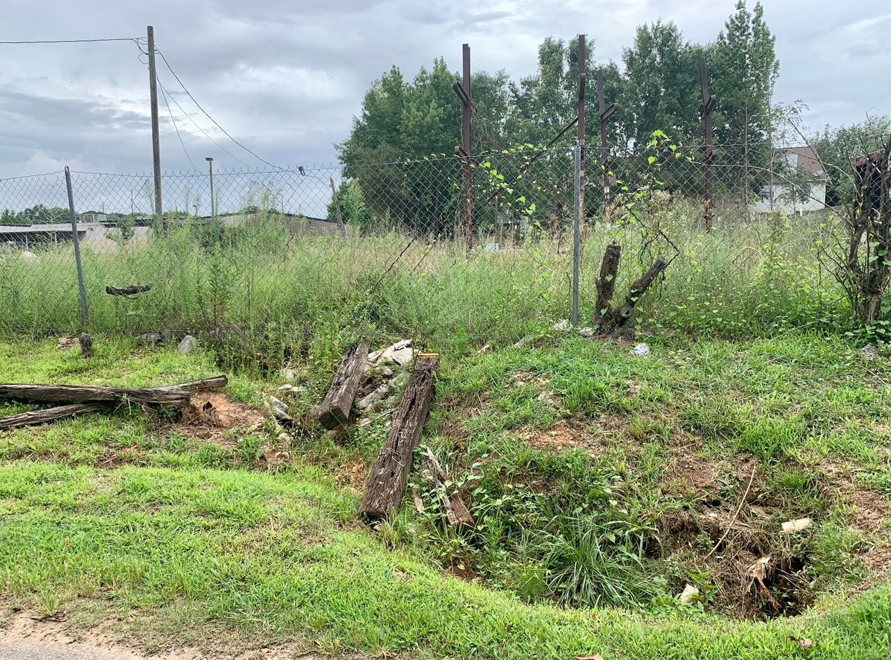 Areas where water collects and flows along Railroad Avenue and on the future town green site following heavy rain.